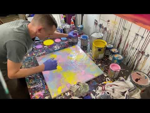 80's Inspired Fractal Painting Demonstration with Blue Pink Yellow Gloss Enamel